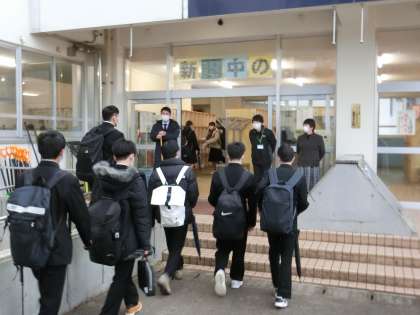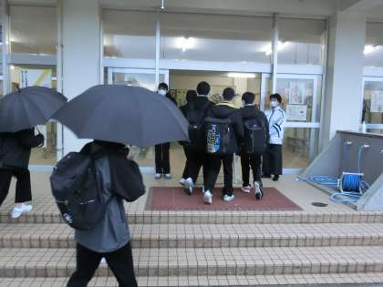 朝の登校風景 公開日 2022/01/11 更新日 2022/01/11 そ の 他 1月11日(火)8:00 新しい1年が始まって最初の登校の様子です。生徒はやる気に満ちた表情で元気に登校しています。