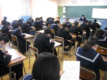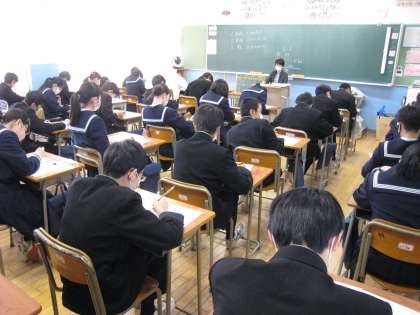 2年 テキストテスト1 公開日 2022/01/12 更新日 2022/01/12 2学年 1月12日(水) 2限 2年生は2学期末から取り組んでいるテキストの学習の確認をするテキストテストを行いました。2限は、英語と理科の様子です。冬休みに学習した成果を発揮しながら、真剣な雰囲気で取り組んでいました。 上:2-1 中:2-2 下:2-3