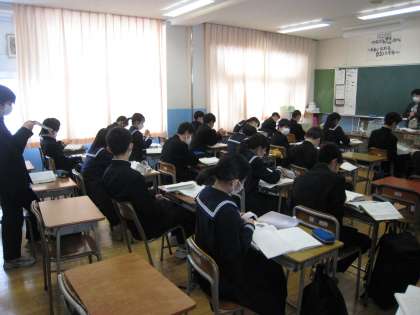 1月14日(金) 4限 上:2-1 国語 中:2-2 国語 下:2-3 数学
