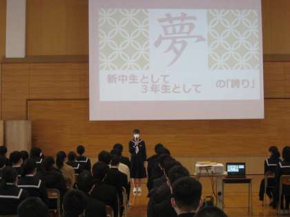 3年生 学年集会 公開日 2022/01/14 更新日 2022/01/14 3学年 本日4限に学年集会を実施し、新年の抱負と卒業に向けた学校生活の過ごし方について確認しました。各クラスの代表者による今年の一字に関する意見発表は、とてもよいものばかりでした。