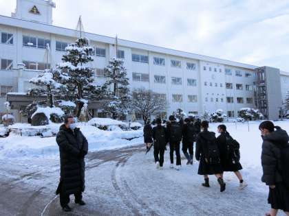 冷え込みの厳しい、氷点下の朝です。路面が凍結していて、登校する生徒は路面に注意しながら気を付けて歩いています。今日は、夜に「夢発見!『13歳の自分探し』」の第2回実行委員会(事前準備)が行われます。