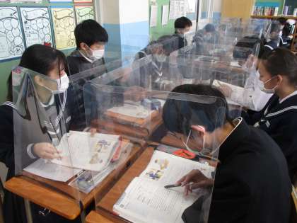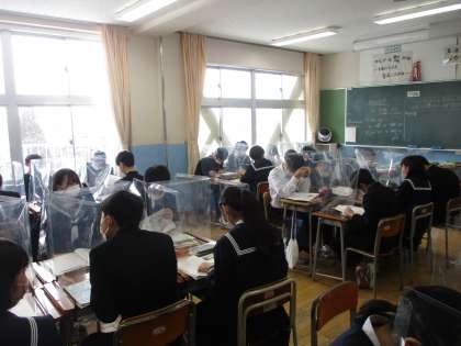 1月28日(金) 飛沫防止対策(デスクガードの活用) 公開日 2022/01/28 更新日 2022/01/28 そ の 他 授業の中の話合い活動や給食(黙食)等、新型コロナ感染症対策として、PTAの支援により購入した飛沫防止シールド(デスクガード)を活用しています。