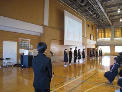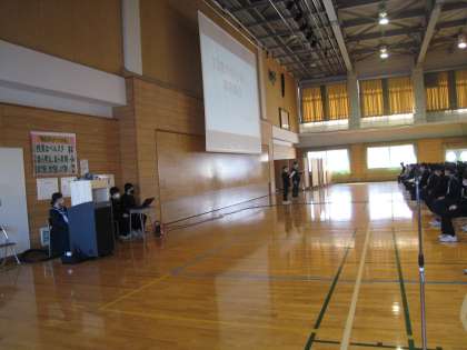 明日実施する「13歳の自分探し」に向けて、事前に学年集会を行いました。代表生徒が講座内容の紹介をしたり、心構えの確認をしたりしました。様々な職業の方々から仕事について話を聞きます。たくさんのことを学べるよう生徒たちは意気込んでいます。お世話になる講師の方々やPTAボランティアスタッフの皆様、明日はよろしくお願いいたします。