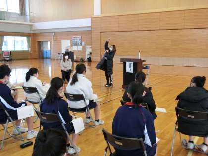 「夢発見!『13歳の自分探し』」その11 公開日 2022/02/03 更新日 2022/02/03 学校行事 2月3日(木)11:10 第3講座が始まりました。その様子です。 上:A プロサッカーチーム 中:B プロバスケットボールチーム 所属ダンスチーム 下:C 製造業(電子機器)