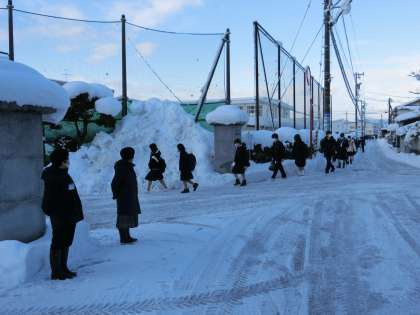 2月7日(月)8:00 冷え込みの大変厳しい、氷点下の朝です。生徒は寒そうにしながらも元気に登校しています。