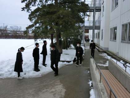 寒い日が続いていますが、今朝も生徒会役員と学級代表による、元気に挨拶運動を行っています。今日は県立高校推薦受検が行われます。放課後には、1・2年生による卒業プロジェクト実行委員会が行われます。