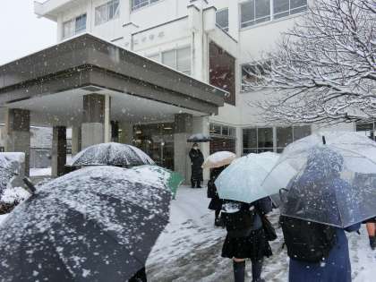 2月21日(月)8:00 細かい雪の降る、寒い朝です。今週は、明日から学年末評価が実施されます。