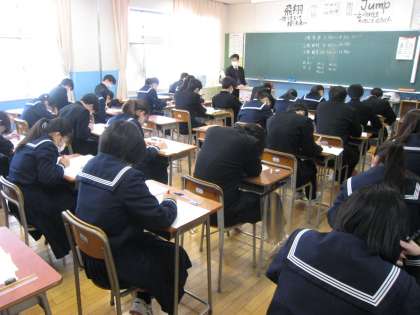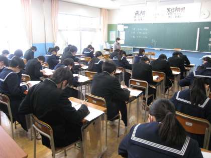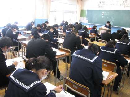 今日から25日(金)まで、今年度最後の学年末評価が行われています。3年生は、5教科のみの実施です。本日1限、英語の様子です。
