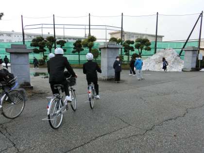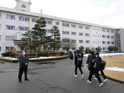 朝の登校風景 公開日 2022/03/02 更新日 2022/03/02 そ の 他 3月2日(水)8:00 昨日の雨で、校地内の雪が解け、久しぶりに土のグラウンドが広がって見えます。今日はノー部活動デーで、放課後に代議員・専門委員会が行われます。