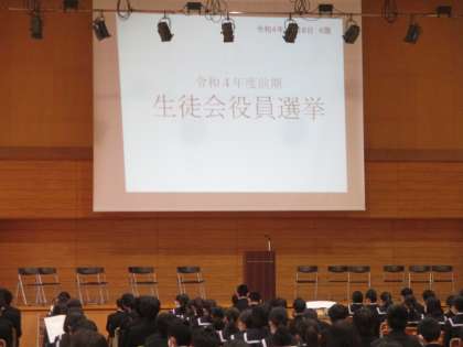 令和4年度前期生徒会の会長と副会長を選ぶための立会演説会が行われました。