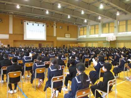 演説会の終わりに、選挙管理委員長から諸注意が行われました。この後、教室に戻って投票が行われました。
