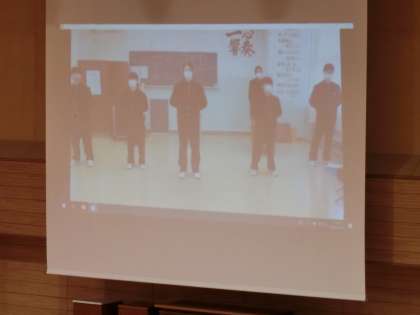 卒業生を祝う会3 公開日 2022/03/14 更新日 2022/03/14 生徒会 クイズ大会の後は、PR班からの発表です。まず在校生の各部活動が協力して作成した、吹奏楽部の演奏に合わせた応援リレーを行いました。3年の生徒たちは、1・2年生の部員の様子を食い入るように見ていました。