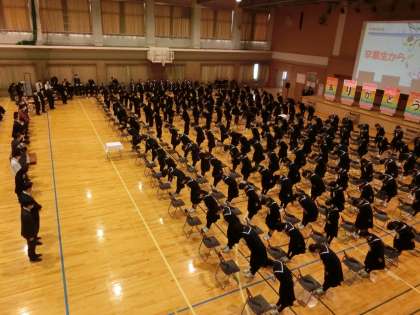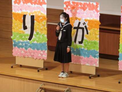 最後に生徒会長が、3年生に感謝の気持ちとこれからの新庄中学校を守っていく決意を伝えました。