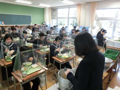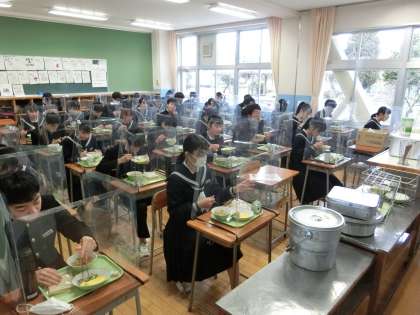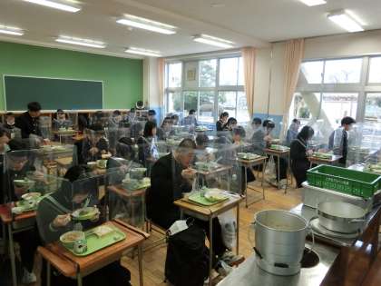 中学校最後の給食3 公開日 2022/03/14 更新日 2022/03/14 3学年 最後の給食の献立は焼きそばです。みんなたくさんおかわりして、おいしそうに食べていました。 上:3−1 中:3−2 下:3−3