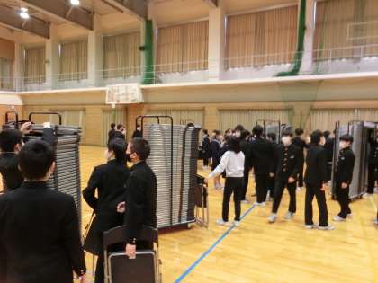 3月14日(月)15:00 6限目は、在校生が3年生の教室の飾り付けや式場の準備を行いました。