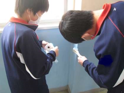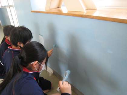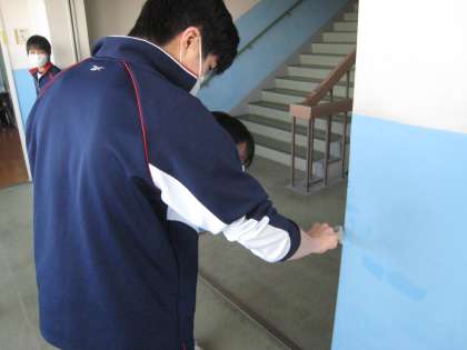 2年 ペンキ塗り 公開日 2022/03/16 更新日 2022/03/16 2学年 3月16日(水) 放課後 2年生では、これまで利用してきた2年の教室、廊下の壁にペンキを塗って補修しました。これで次の新2年生が気持ちの良い環境で新学期を迎えられそうです。