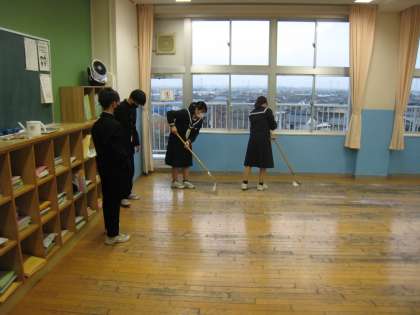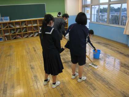 3月18日(金)放課後 新年度へ向けて、各クラスで清掃とワックスがけを実施しています。