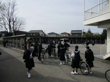 4月11日(月) 朝の登校風景 公開日 2022/04/11 更新日 2022/04/11 そ の 他 4月11日(月) 爽やかな朝を迎えています。 本日より、3学年全てが揃っての朝の登校となりました。 1年生の自転車通学生は、自転車を停める場所の確認をしています。 本日、1年生では交通安全教室、自転車点検が行われます。 2、3年生は、中教研学力調査が行われ、中学校入学からこれまでの学習の定着の成果を確認します。