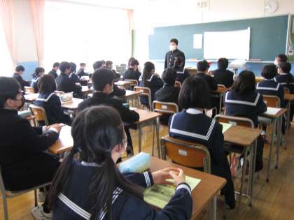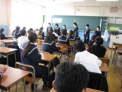 4月11日(月) 1学年学活「自己紹介」 公開日 2022/04/11 更新日 2022/04/11 1学年 4月11日(月) 1学年の学活の様子です。 各クラスで自己紹介が行われました。 自身の好きなものについて笑顔で語る生徒の姿もありました。