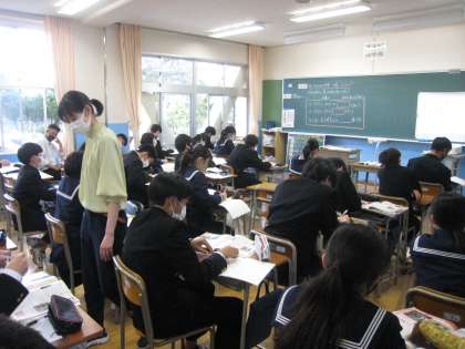 4月23日(土)5限 授業参観(3年生)1 公開日 2022/04/23 更新日 2022/04/23 3学年 4月23日(土) 5限 授業参観の様子です。担任の授業を行っています。 上:3-1 家庭 中:3-2 数学 下:3-3 社会
