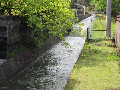 学校の横を流れる広田用水も田植えの時期を迎え増水していました。
