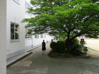 生徒は、正面玄関脇から、緑の美しい通路を通って生徒玄関へ向かいます。