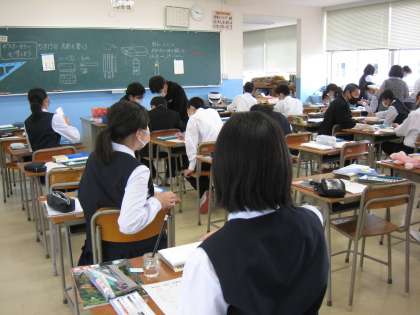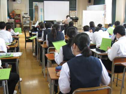 今日の1学年の授業の様子です。 上:1−4家庭 中:1−5美術 下:1−6音楽