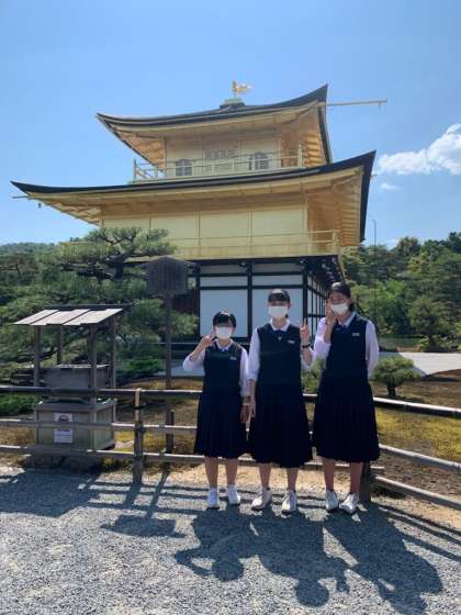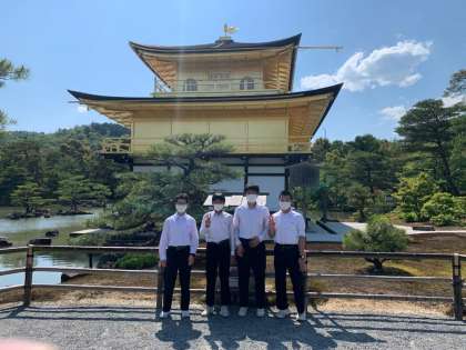 6組です。 鹿苑寺金閣にいます。 金閣寺のダイナミックさに感動しています。