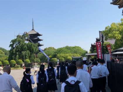 3組です。 先程、京都を出発して 新幹線に乗車中です。 京都では東寺に行きました。
