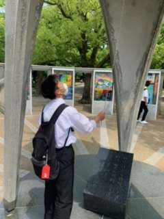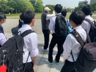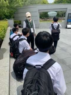 ガイドさんのお話を真剣に聞き、平和学習を進めています。