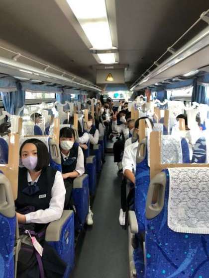 3組です。 先程、新幹線を降りました。 いよいよバスはユニバーサル・スタジオ・ジャパンへ。 みんなまだまだ元気です!