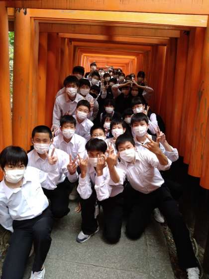 4組です。伏見稲荷大社にいます。 無言、マスクですが良い笑顔です。 京都を満喫しています。