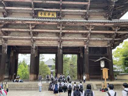 午前11時30分、6組は奈良公園に到着しました。今から東大寺を見学します。