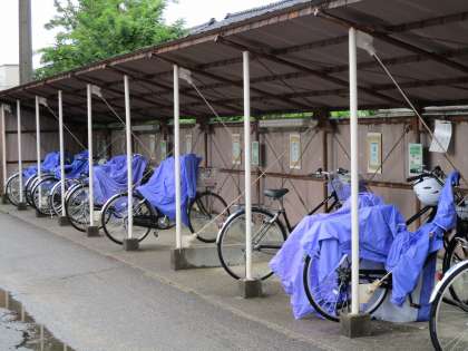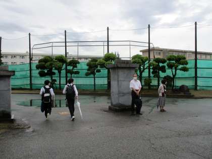自転車通学の生徒は合羽を着用して登校する姿が見られました。