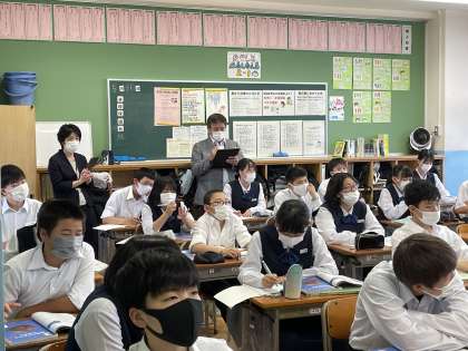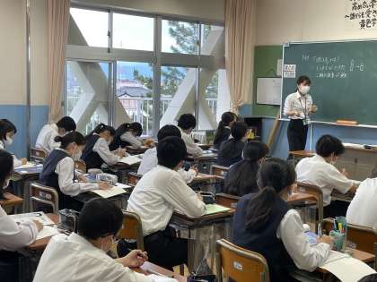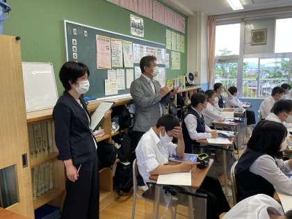 5月31日(火)2限 教員基礎研修(2−1理科の授業実践) 公開日 2022/05/31 更新日 2022/05/31 そ の 他 2年1組の理科の授業を、教員の基礎研修の一環として富山市教育委員会の指導主事の先生が見学されました。 生徒は積極的に挙手して授業に取り組みました。