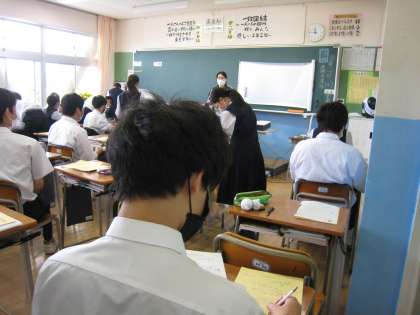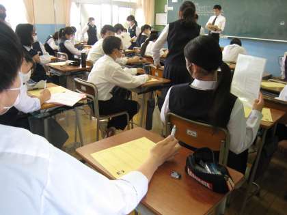 生徒は社会に学ぶ「14歳の挑戦」に向けて、自己紹介カードを記入していました。