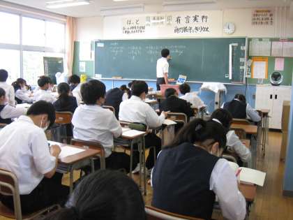 6月8日(水) 今日の1学年の授業の様子です。 上:1−1数学 中:1−2保健 下:1−3数学