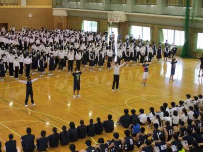 その後、生徒会執行部が中心となり、全校生徒で選手達にエールを送りました。