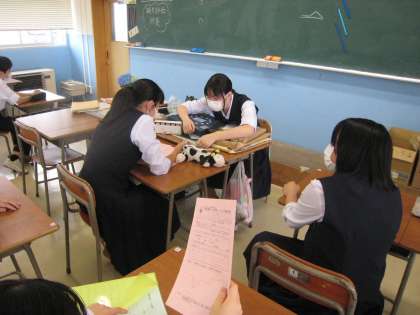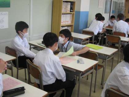 2年生では、7月に行われる「社会に学ぶ14歳の挑戦」に向けて、各事業所に分かれて打ち合わせをしています。