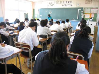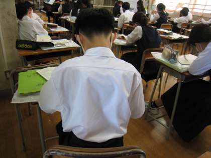 6月22日(水) 今日の1学年の授業の様子です。 上:1−1英語 中:1−2数学 下:1−3音楽