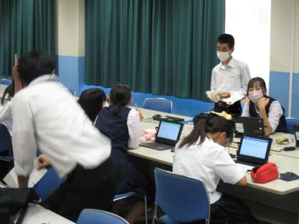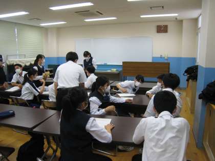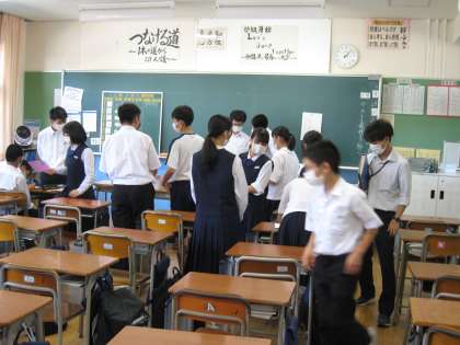 代議員、専門委員会 その3 公開日 2022/06/29 更新日 2022/06/29 生徒会 上・・・給食委員会(アンケートの回答のための調べ活動) 中・・・保健委員会(熱中症予防放送の役割分担) 下・・・広報委員会(掲示物作成作業の仕上げ)