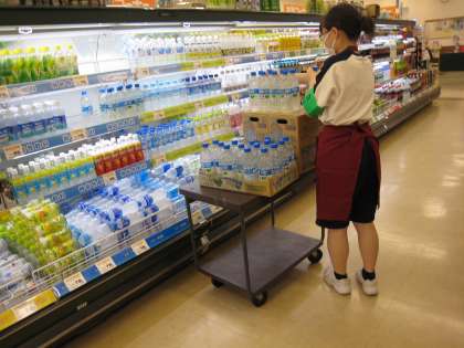 アルビス新庄店では、品出しや、野菜を袋に詰める作業をしています。ヤマダデンキ家電住まいる館富山金泉寺店では、商品まわりのそうじをしています。河上金物株式会社では、会社の朝礼で、社員の方々の前で自己紹介をしています。