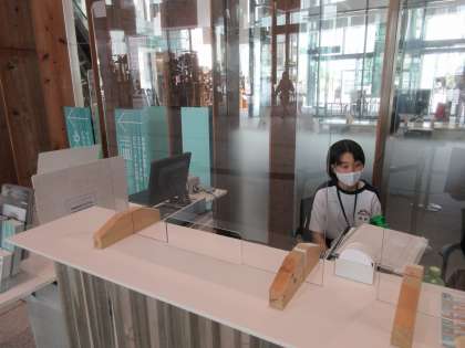 市ガラス美術館では、受付業務をしながら、来館したお客様に丁寧に応対していました。少しずつ活動にも慣れてきています。
