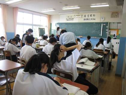 1学年授業の様子 その1 公開日 2022/07/06 更新日 2022/07/06 1学年 7月6日(水) 今日の1学年の授業の様子です。 今日は、心臓検診(心電図測定)が行われるため、体育服に着替えて授業を受けています。 上:1−1数学 中:1−2学活 下:1−3数学