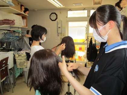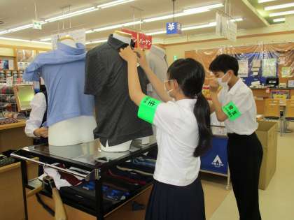 洋服の青山では、マネキンの服を着せ替えていました。NEXUSでは、マネキンを使って、編み込みの練習をしました。