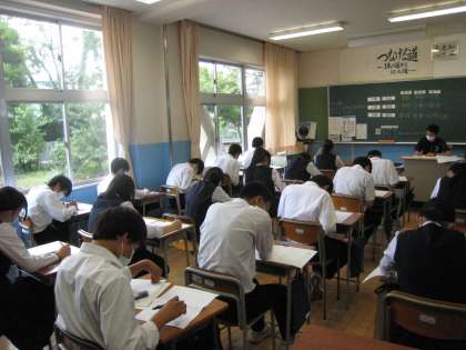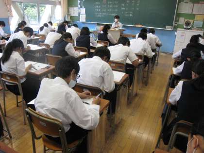 3学年実力テストの様子 その1 公開日 2022/07/07 更新日 2022/07/07 3学年 7月7日(木) 3学年では今日から2日間、実力テストが行われます。入試に合わせた200点満点のテストです。写真は、理科のテストを受けている様子です。 上:3−1 中:3−2 下:3−3