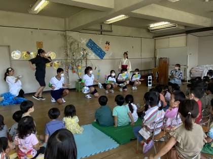 7月7日(木)「社会に学ぶ『14歳の挑戦』」その9 公開日 2022/07/07 更新日 2022/07/07 2学年 柳町保育所では、「七夕の集い」で先生方と一緒に劇を行い、園児を楽しませていました。 金岡邸では、庭の掃除や薬研体験を行いました。 新庄保育所では、園児と遊ぶことはもちろん、食事のサポートや掲示物の作成も行いました。