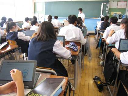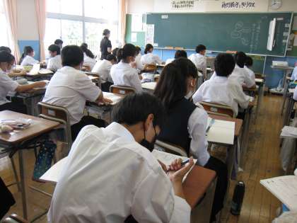7月14日(木) 今日の1学年の授業の様子です。 上:1−1国語 中:1−2英語 下:1−3理科