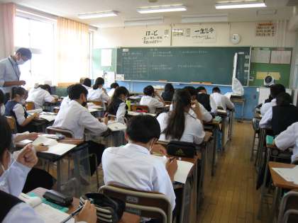 7月20日(水) 今日の1学年の授業の様子です。 上:1−1数学 中:1−2体育 下:1−3数学