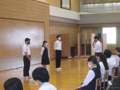 北信越大会や全国大会の壮行会や、学年生徒会では、1学期を振り返って、学級代表から発表がありました。